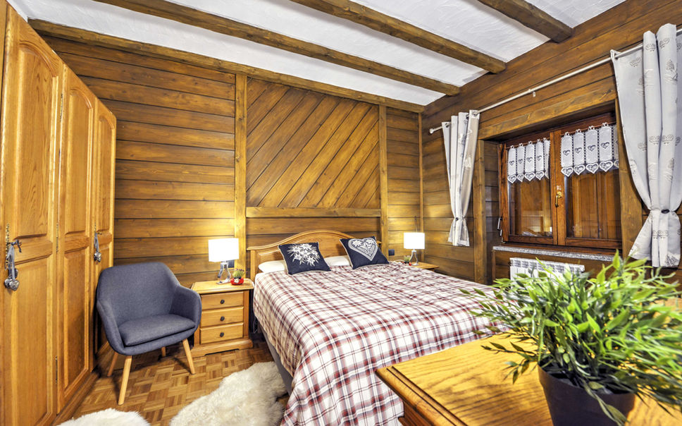La zona notte offre una camera da letto accogliente, mentre la funzionalità è garantita da un bagno moderno e da un disimpegno intelligentemente attrezzato con portasci, scaldascarponi e una pratica cabina armadio.